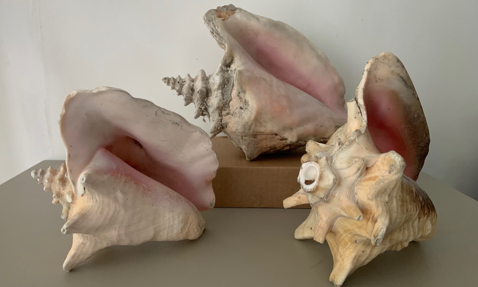 I decided to buy them and asked for assistance from the person on the desk. They told me there was another conch from the same collection and took me further into the shop where I was shown a Queen Conch trumpet cut for blowing – I bought all three shells there and then.