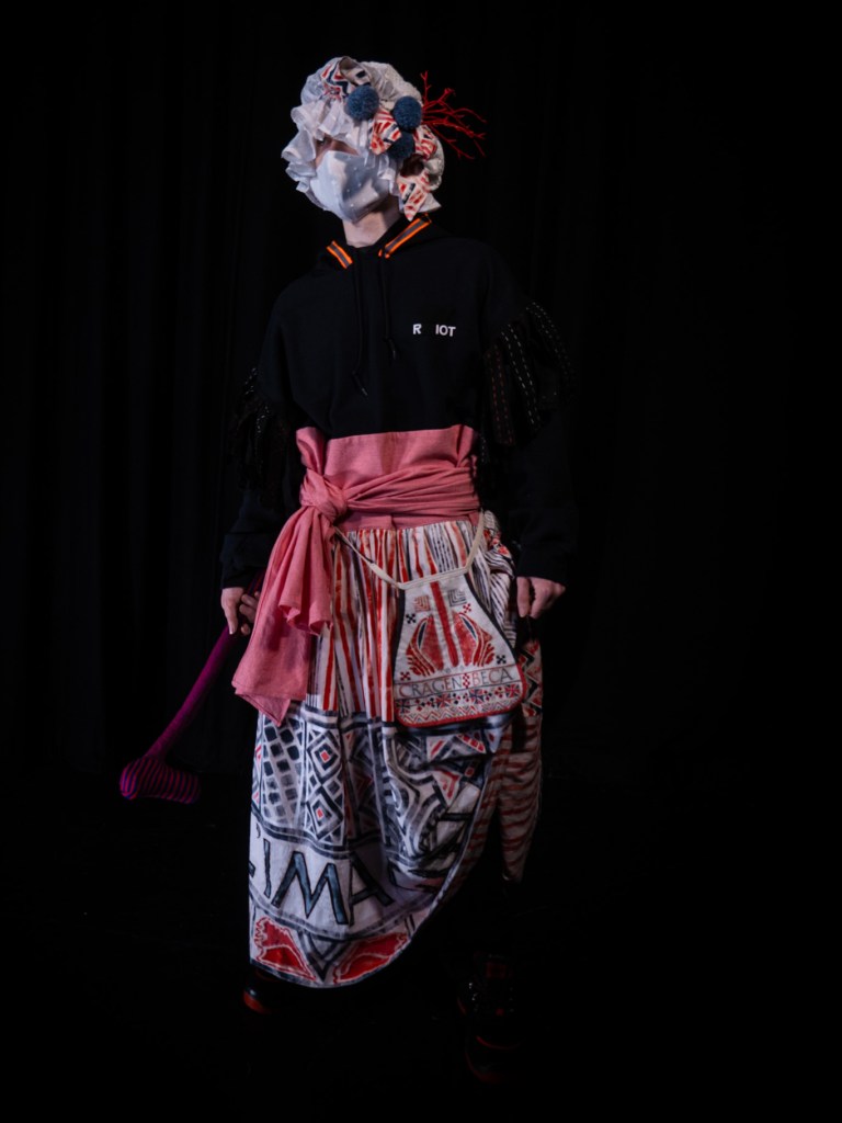 Gwisgoedd wedi dylunio gan Kathryn Campbell Dodd ac wedi datblygu gydag artist tecstil Louise Bird. Diolch I Kirsten Hinks-Knight am eich cymorth gyda’r cwiltio.