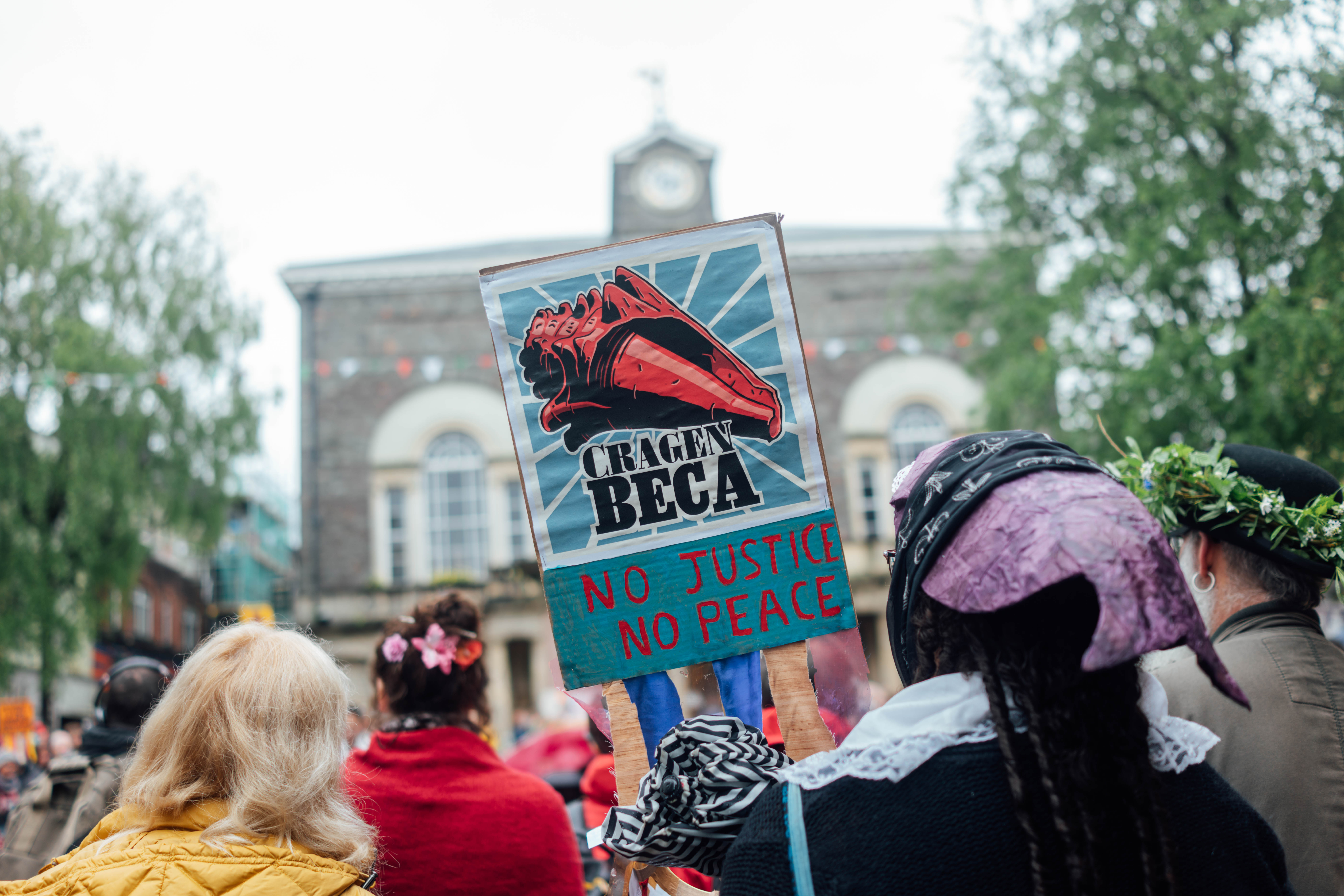 “Roedd hi’n 1af o Fai gwlyb 2022, ond Roedd ysbryd y brotest yn ymestyn yn ôl bron i 200 mlynedd yn fywiog”. Mel Perry